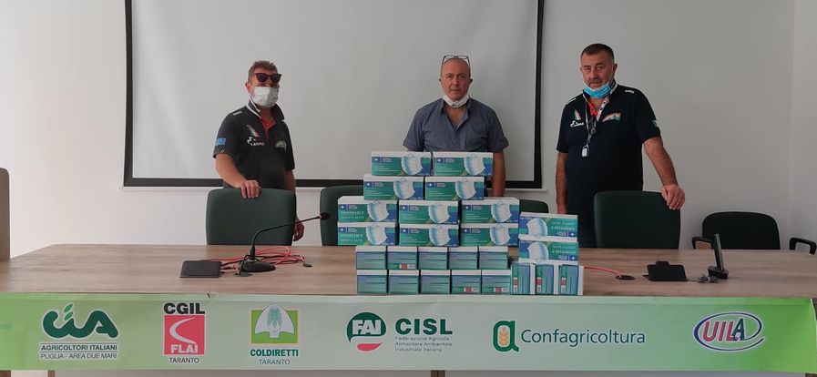 Quello che è successo nella grande azienda ortofrutticola di Polignano a Mare, dove ci sono oltre cento lavoranti contagiati dal Covid, non deve più ripetersi. A Taranto sono stati consegnati all’Ente Bilaterale Agricolo Faila Ebat, da parte della Regione Puglia, attraverso la Protezione Civile, i D.P.I. individuali (mascherine) per i lavoratori agricoli a seguito di protocollo d’intesa sottoscritto in Prefettura nei mesi scorsi.I dispositivi sono stati consegnati oltre che presso l’ente Bilaterale Faila Ebat presso le sedi delle 6 organizzazioni che costituisco lo stesso Ente Bilaterale Agricolo Faila Ebat per le organizzazioni datoriali Cia, Coldiretti, Confagricoltura e per i sindacati dei lavoratori agricoli FlaiCgil, FaiCisl e UilaUil. I dispositivi saranno consegnati ai lavoratori e alla aziende agricole per garantire la protezione dei dipendenti durante il trasporto e il lavoro nei campi e nei magazzini laddove non è possibile mantenere il distanziamento sociale.Il risultato ottenuto fa parte di un lavoro di squadra fra i vari soggetti in campo realizzato nei mesi scorsi in diversi incontri in videoconferenza con i quali è stata definita l’assegnazione delle risorse fino a 7.800 euro ad azienda agricola, per il trasporto in sicurezza dei lavoratori agricoli e la consegna dei dispositivi di protezione da parte della Regione Puglia tramite l’Ente Bilaterale Agricolo Faila Ebat. Il presidente dell’Ente Bilaterale Vito Rubino ha voluto ringraziare, per il risultato ottenuto, il presidente della Regione Michele Emiliano, il Prefetto di Taranto Demetrio Martino, il presidente della Task Force regionale Leo Caroli e il suo staff, il direttore della Protezione Civile della Regione Puglia Mario Lerario, e il referente provinciale della Protezione Civile di Taranto Giorgio Simeone con il suo staff. Un impegno costante e continuo sul territorio da parte dell’Ente Bilaterale Faila Ebat che continua ad erogare risorse alle imprese e ai lavoratori agricoli con i vari bandi: integrazione indennità malattia/infortunio, genitorialità, visite mediche lavoratori e borse di studio.Per ulteriori approfondimenti è possibile consultare il sito www.failaebat.it o la pagina facebook https://www.facebook.com/failaebat