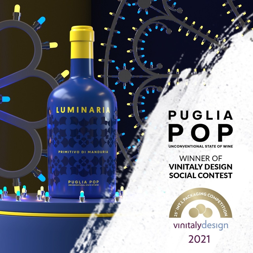 L’etichetta “Luminaria”, Primitivo di Manduria DOP prodotto dalla Cantina Puglia Pop, ha ricevuto il premio Social come migliore etichetta dell’anno, nel corso della 25^ edizione del Vinitaly Design International Packaging Competition promossa, appunto, dall’importante campionaria veronese. La Giuria internazionale di questa edizione, composta da designer, art-director e giornalisti ha selezionato 20 campioni di etichette candidate al concorso e ha lasciato che una giuria popolare giudicasse lo sforzo creativo e innovativo delle più importanti cantine italiane in lizza.