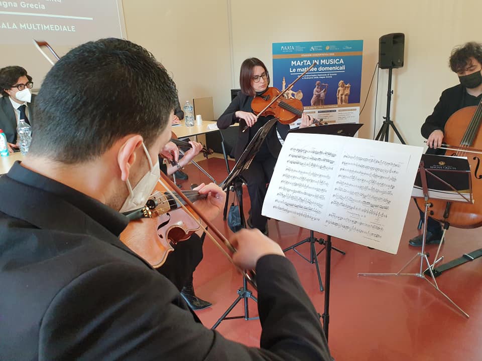 Domenica 20 febbraio il via alla rassegna “MArTA in musica” con “Un’insolita serenata”, l’Ensemble della Magna Grecia diretto da Giovanni Pelliccia. A seguire, domenica 6 marzo: “Suoni nuove memorie antiche”, con l’Ensemble stavolta diretto da Marco Vlasak, vincitore del Premio Nino Rota, con Antonello Fiamma alla chitarra. Domenica 13, tocca al L.A. Chorus diretto da Alessandro Fortunato con “Galanteria musicale”. Domenica 20 marzo di scena la “Canzone d’autore”, la voce di Badrya Razem e il Quartetto d’archi della Magna Grecia. Settimana successiva, domenica 27, “Lux” con il L.A. Chorus diretto da Luigi Leo.
