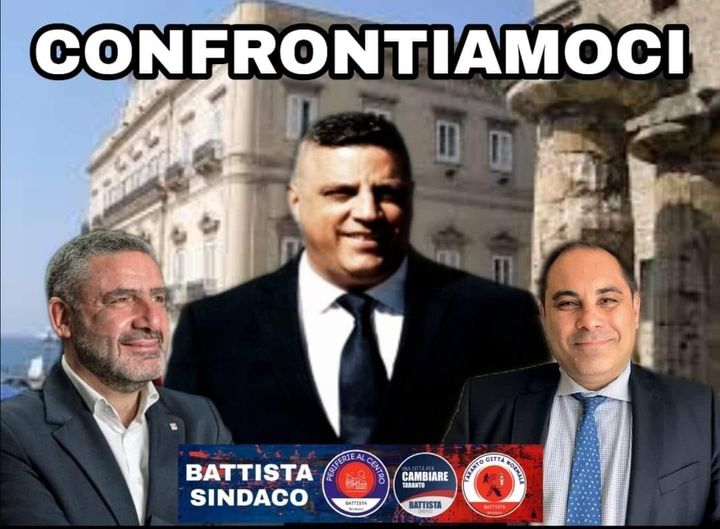 Il candidato sindaco Massimo Battista della coalizione “Una città per cambiare, Taranto città normale, Periferie al centro” rinnova l’invito ai suoi concorrenti Rinaldo Melucci e Walter Musillo ad un confronto pubblico sui temi della campagna elettorale.