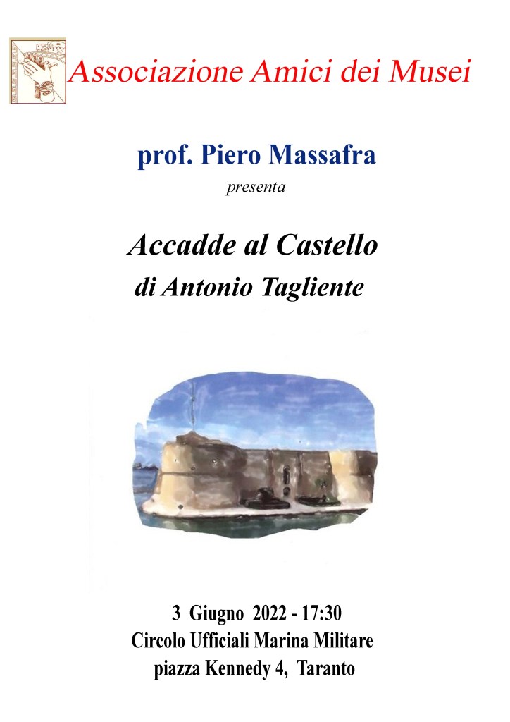 Venerdì 3 giugno, l’Associazione Amici dei Musei-ODV presenta l’ultimo libro dell’ing. Antonio Tagliente: “Accadde al Castello”. Il saggio, edito da Scorpione Editrice, è una raccolta di storie legate al Castello di Taranto, che grazie ai restauri degli ultimi anni è il sito più visitato in Puglia dopo Castel Del Monte. L’autore racconta episodi lieti e tragici avvenuti nel Castello, ricostruiti attraverso antichi documenti, ripercorrendo alcune tappe fondamentali della storia di Taranto, che nell’antico maniero hanno avuto sempre il loro palcoscenico. Dalla lettura delle interessanti pagine emerge che la storia del Castello è intimamente legata a quella della comunità tarantina ed allora forse proprio il Castello, come suggerisce l’autore, può divenire il nucleo attorno al quale rifondare lo spirito identitario di comunità che Taranto sembra aver perso: la fortezza diviene allora davvero “monumentum” (nel significato originario del termine) per la comunità tarantina, ricordo e testimonianza dei suoi trascorsi. Una prospettiva inusuale per far rivivere questa immagine iconica della città, nel racconto di momenti noti e meno noti di vita vissuta all’interno o nelle vicinanze del nostro fortilizio. L’incontro è fissato alle 17:30 preso il Circolo Ufficiali di Taranto, in piazza Kennedy n°4.