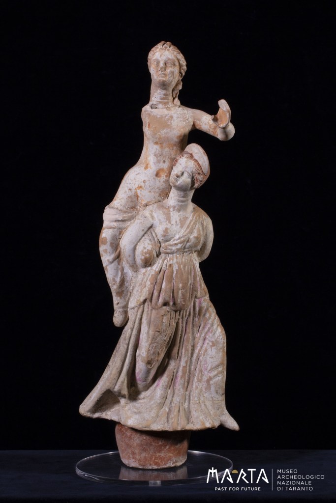 L’acrobata, il gruppo fittile con la scena dell’ephedrismos (gioco che consisteva nel cercare di rovesciare una pietra posta ad una certa distanza, utilizzando una palla oppure altre pietre. Il giocatore che non riusciva doveva scontare la penitenza di portare il vincitore sulle spalle che, una volta salito sull’avversario, gli copriva gli occhi con le mani) e la lekythos (recipiente per la conservazione di oli profumati e unguenti) sovvraddipinta, saranno i reperti ambasciatori del Museo Archeologico Nazionale di Taranto, nella mostra all’Istituto Italiano di Cultura di Parigi, dal 4 luglio al 28 settembre all’interno del prestigioso edificio settecentesco de Galliffet nel prestigioso quartiere di Saint-Germain della capitale francese.