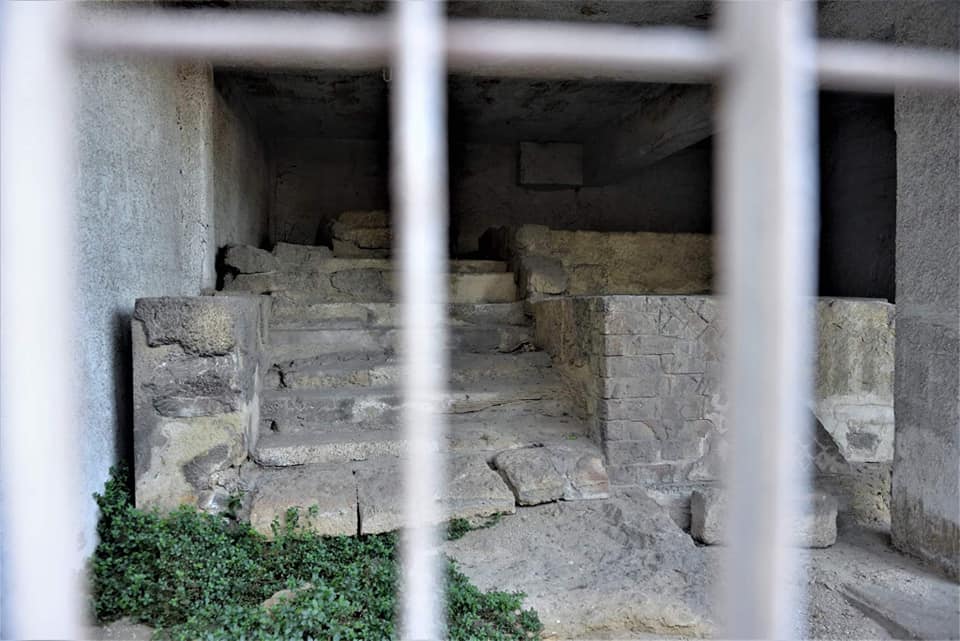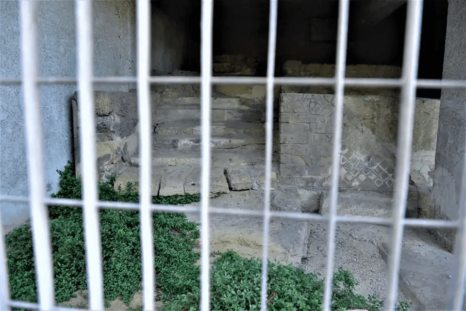 Per qualche decennio il vano esterno alla base della facciata ovest del palazzo, è stato alla mercè di chiunque diventando un letamaio, poi la decisione di chiudere il sito con una inferriata. Ciò non impedisce alla spazzatura di infilarsi tra le sbarre o all’erba infestante di crescere; chi avrebbe il dovere di pulire periodicamente? Peraltro, mai una segnaletica fu apposta, come per tanti altri siti archeologici che invece andrebbero evidenziati. Eppure potrebbe essere tappa di un percorso turistico, sebbene non sia rimasto molto.