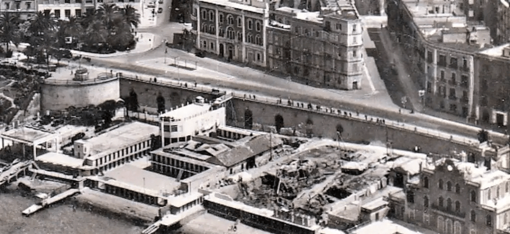 Siamo nel 1956, anno di elezioni amministrative; al sindaco Nicola De Falco (Pci) succede Raffaele Leone (Dc) ed iniziano i lavori di fondazione del grattacielo Di Maggio che avrebbe interrotto per sempre eventuali ambizioni di prolungare il lungomare Vittorio Emanuele III. Come ci ricorda lo storico prof. Angelo Conte, che ci ha fornito preziose informazioni sulla importante scoperta archeologica, non mancarono contestazioni in città per la concessione di una licenza edilizia che deturpava fortemente il paesaggio.