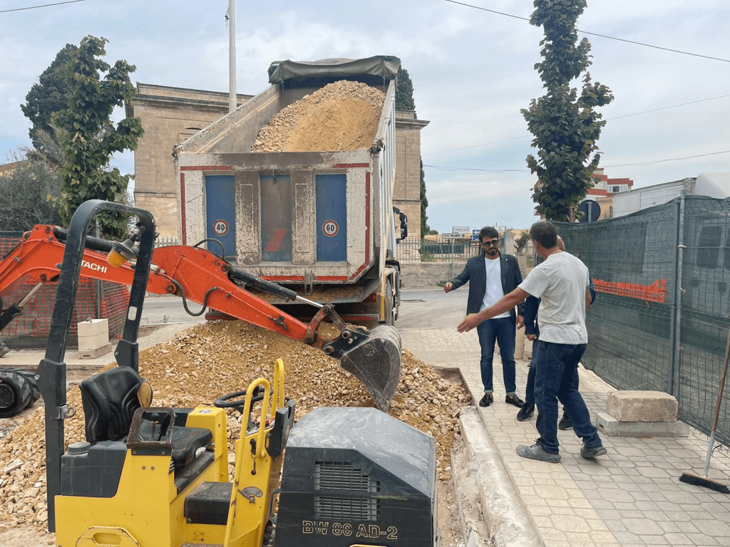 Visita dell’assessore ai Lavori Pubblici Mattia Giorno al cantiere per il tombamento dei bagni pubblici in piazza della Vittoria a Talsano