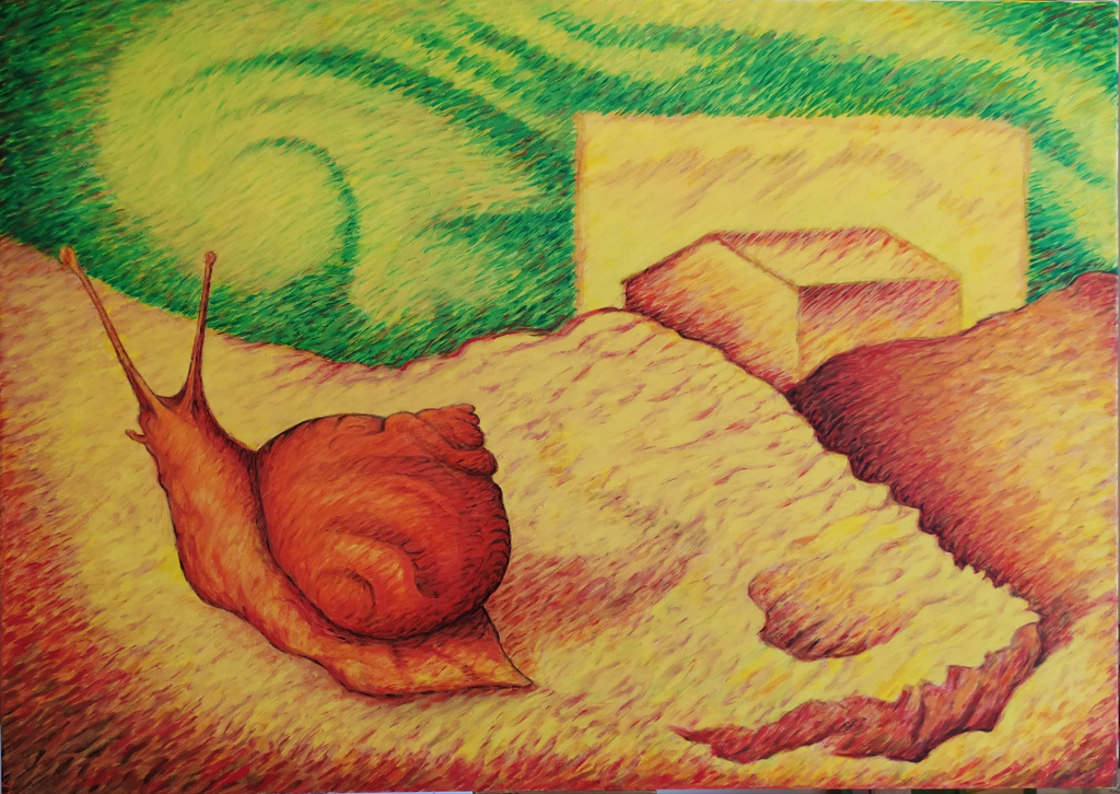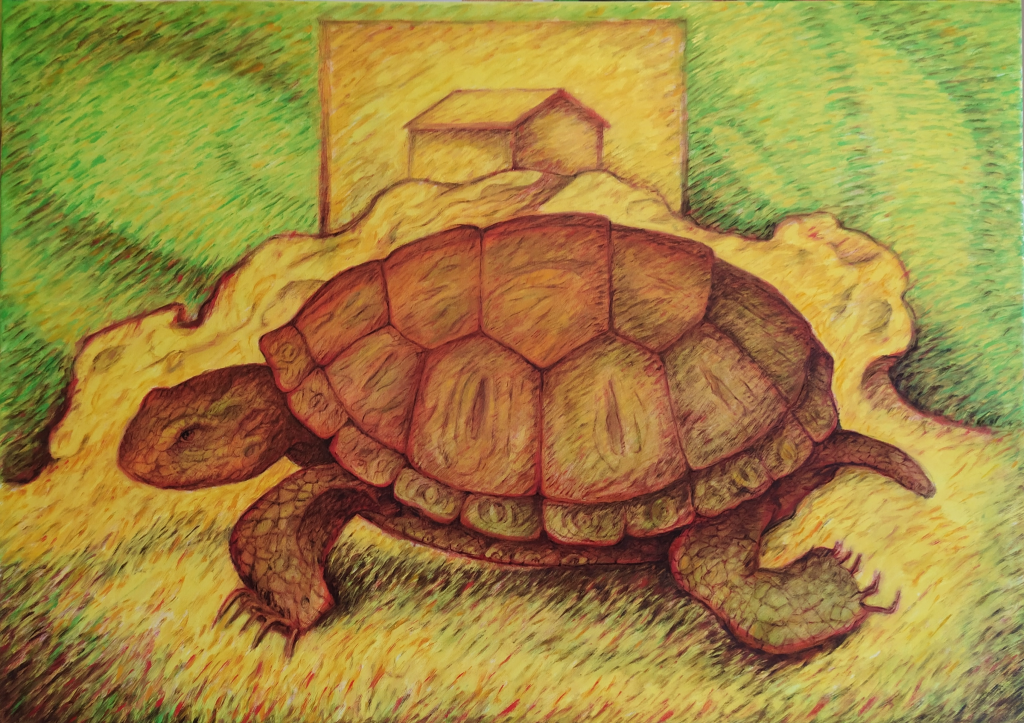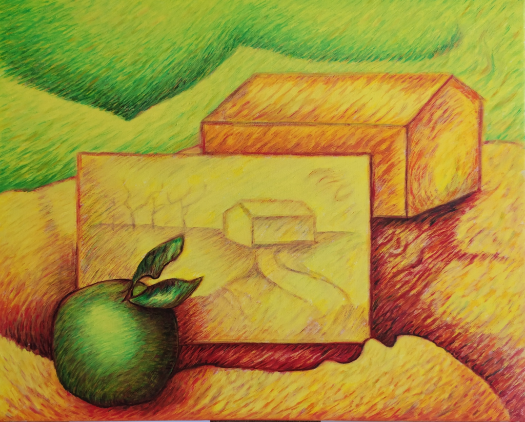 L’artista propone in questa mostra 25 dipinti inediti. Filo conduttore della mostra è una “casetta”, che dà il titolo alla mostra. «“La mia casa”, cioè “il mio mondo”: ovviamente si parla di mondo interiore – ribadisce l’artista – Il significato di casa è molto ampio: Il mondo in cui viviamo è la nostra casa! Noi stessi siamo una casa! Il primo disegno che realizzano i bambini è una casa. In questi dipinti, insieme alla casa, vi sono altri elementi ricorrenti. Così come la casa, anche questi soggetti non sono da intendere come elementi paesaggistici, ma come simboli. A tal proposito, per rafforzare questo concetto, ho voluto incorniciare la casa in un riquadro perché, senza questo accorgimento, sarebbe stata una semplice casa inserita in un paesaggio ma, evidentemente, non è questo il mio intento. Melagrana, tartaruga, grembo materno, ecc. sono tutte delle “case”. La tartaruga viene definita saggia e portatrice di verità; la chiocciola è simbolo di prosperità e ricchezza; entrambe, camminano sempre con la loro casa e quando necessario si chiudono al loro interno. Altra caratteristica importante è che procedono lentamente, in contrasto con la vita frenetica a cui siamo abituati (e forse costretti) a vivere oggi. Secondo me è importante rallentare, meglio ancora, fermarsi del tutto per riflettere: ecco perché dipingo, per rallentare e fermarmi e far fermare per un attimo i visitatori di questa mostra. Fermarsi per riflettere e far ristorare un po’ l’animo».