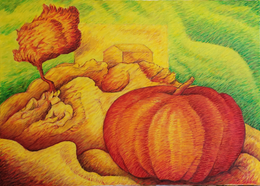 La sua ricerca artistica sembra riflettere un percorso interiore di profonde riflessioni sulla vita dell’uomo, riflessioni che generano un’articolata simbologia: pur essendo tratti dalla realtà che ci circonda, gli oggetti raffigurati, attraverso le forme, attraverso una scelta cromatica che indugia su colori di impatto (in particolare l’arancio, il giallo e un verde acidulo, in forte contrasto tra loro), diventano irreali; si tratta di un effetto voluto, perché essi non rappresentano se stessi, ma sempre qualcos’altro. Il risultato, per l’osservatore, è una realtà trasfigurata e fiabesca, dagli espliciti echi metafisici.