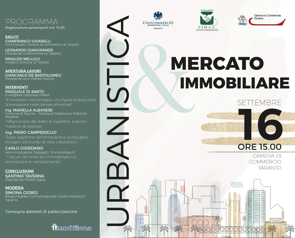 ‘Urbanistica & Mercato Immobiliare’, è il tema del meeting organizzato da Fimaa Confcommercio Taranto, la Federazione dei Mediatori ed Agenti Affari, venerdì 16 settembre p.v.
