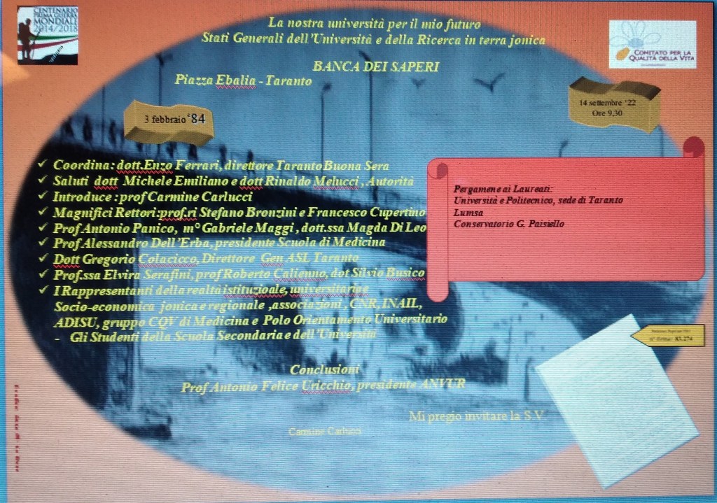 L’auspicio è che l’intera Comunità senta l’orgoglio di TARANTO CITTA’ UNIVERSITARIA.