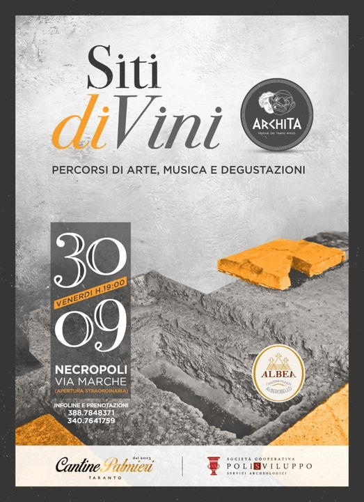 “Siti diVini” nasce con l’intento di valorizzare i siti storico archeologici della cittΓ di Taranto, diffondere la cultura del vino e delle eccellenze enogastronomiche del territorio, abbinando performance artistiche e tour guidati.