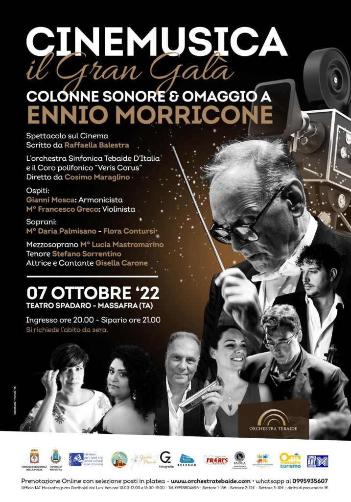 Cinemusica il Gran Galà, Colonne Sonore & Omaggio a Ennio Morricone il prossimo 7 Ottobre presso il teatro Spadaro a Massafra