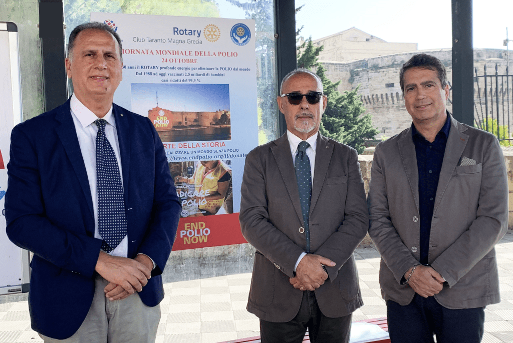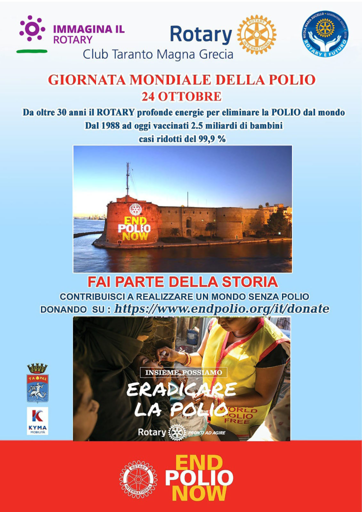 Il Presidente del Rotary Club Taranto Magna Grecia, Amm. Ermenegildo Ugazzi, ha spiegato che «come partner fondatore della Global Polio Eradication Initiative, il Rotary International è impegnato dal 1988 nella lotta alla malattia, contribuendo a ridurre del 99,9 percento i casi nel mondo, passando dai 350mila di quell’anno, quando la malattia paralizzava un bambino ogni minuto e mezzo, ai pochissimi casi attuali. Da allora i soci del Rotary hanno contribuito, con oltre 2,1 miliardi di dollari e innumerevoli ore di volontariato, a proteggere circa 3 miliardi di bambini in 122 paesi da questa malattia paralizzante».