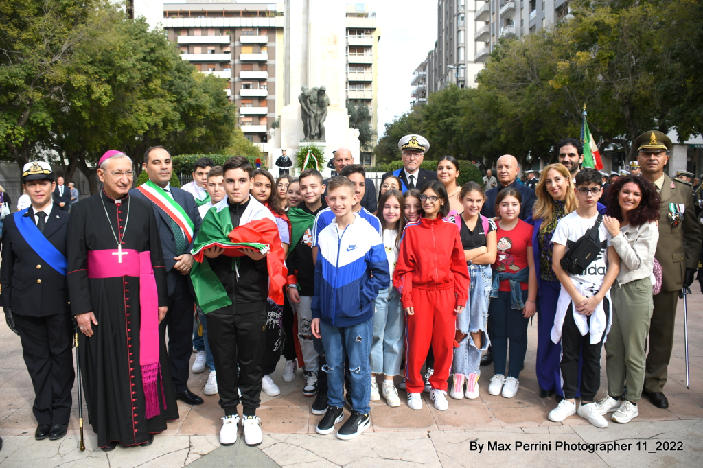 è stato reso omaggio ai Caduti in piazza della Vittoria alla presenza del Prefetto dott Demetrio Martino, dell’ amm. De Candia, di mons Santoro, del Sindaco di Taranto, inoltre è stato consegnato il TRICOLORE all’IC De Carolis con la partecipazione di tante Autorità e cittadini ;