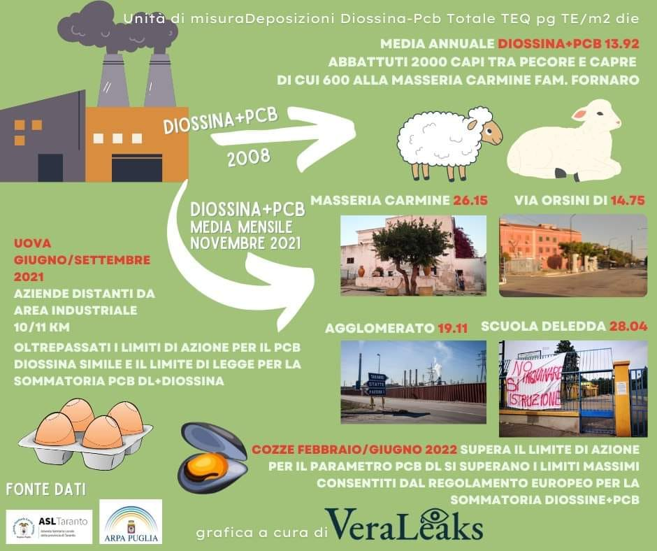 I tarantini ricorderanno quanto accadde nel 2008, anno in cui furono abbattute migliaia di capre delle masserie intorno all’Ilva perché il loro latte, e i prodotti derivati da quel latte, risultarono contaminati da diossina. I dati rilevati in quell’occasione diedero il via al processo Ambiente Svenduto che ha visto condannati, in primo grado, vertici di Ilva e politici.