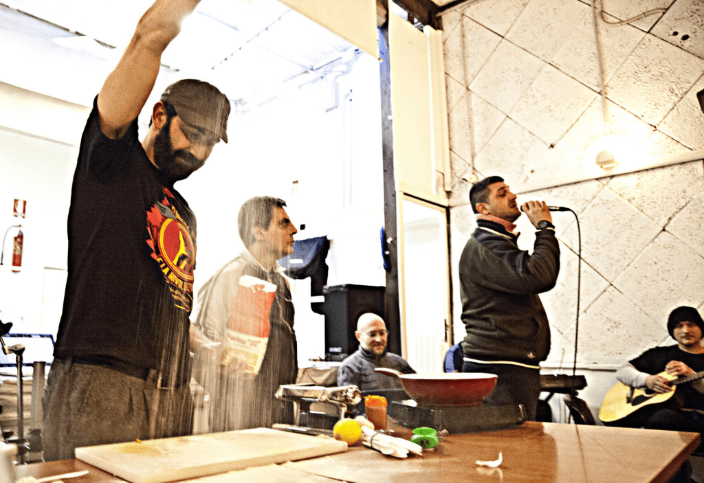 Nella seconda parte della serata il palcoscenico sarà tutto per Donpasta il cuoco poeta, ecologista e stralunato, che presenterà “Food Sound System”, il suo progetto multimediale in cui si mescolano cucina salentina, musica, racconto popolare e immagini, per uno spettacolo a 360°. Tutti i sensi sono chiamati in causa: vista, gusto, olfatto, tatto, udito. Ogni testo, ogni parola, ha un controcanto nelle immagini e nei suoni che dalla cucina raggiungono la musica ispirando le melodie. La musica, rigorosamente dal vivo, suona verso i fornelli e i fornelli la ripagano della stessa moneta. Nuove lasagne musicali spruzzate in levare di reggae, jazz e rock. È così che il Food Sound System fluisce, in una sorta di stillicidio gastronomico per lo spettatore…