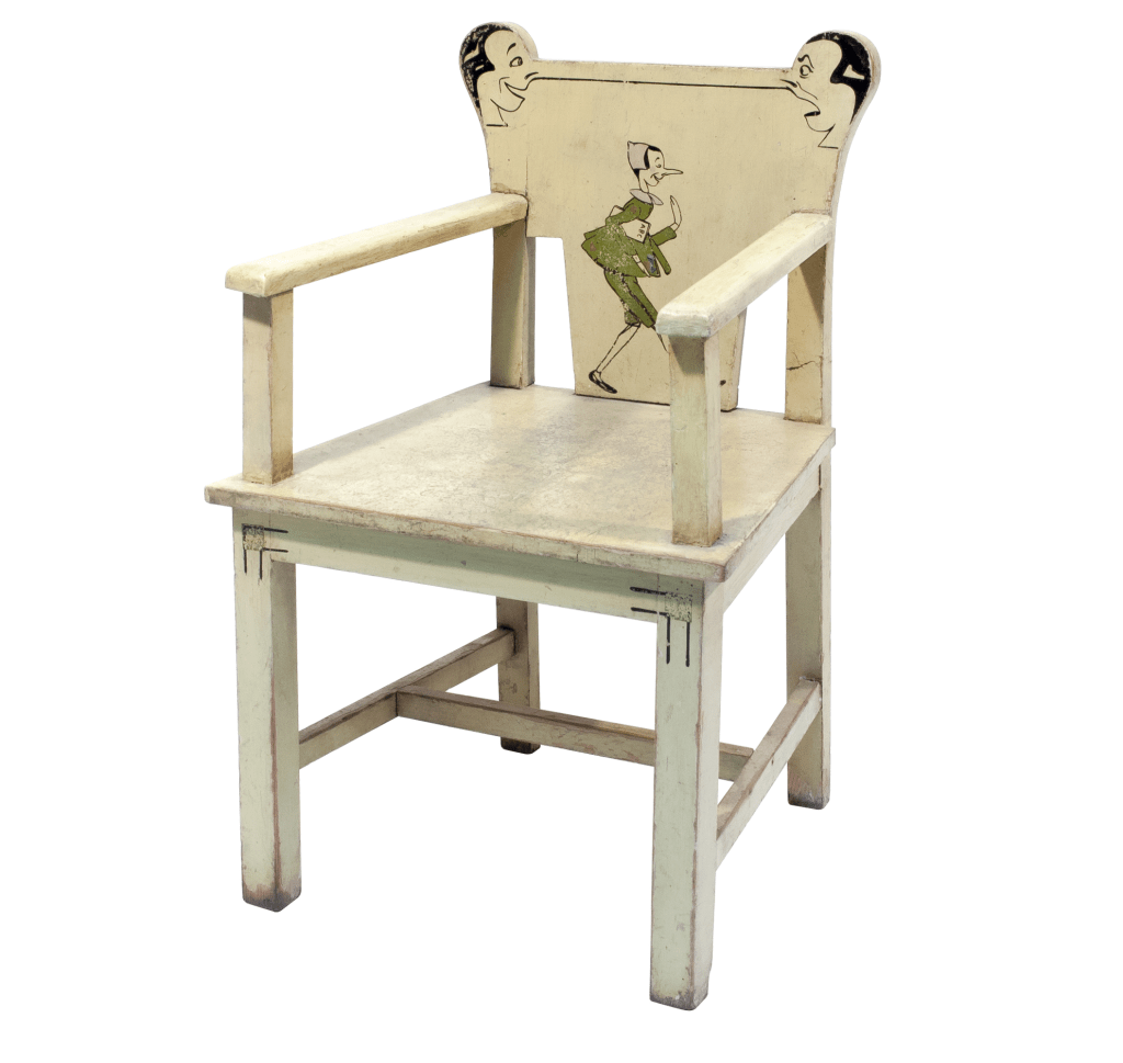 “I balocchi” racconta l’evoluzione della cultura dell’infanzia, uno spaccato storico nel quale creativi, pedagogisti e architetti hanno iniziato a progettare oggetti espressamente destinati ai bambini. Mobili e “camerette”, arredi scolastici, abiti, giochi di legno e per esterno, vengono realizzati da grandi artisti e designer, ma anche da autori sconosciuti, attingendo a cultura, creatività e moda del tempo.