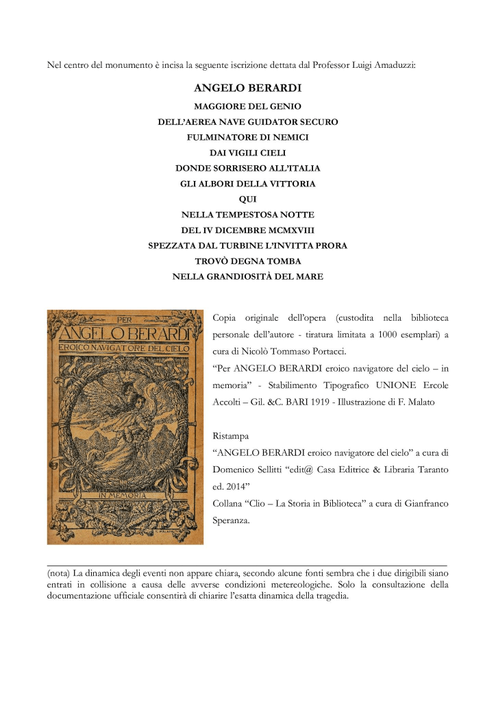 Il 4 dicembre del 1918 perdeva la vita in un tragico incidente ANGELO BERARDI , grande eroe tarantino