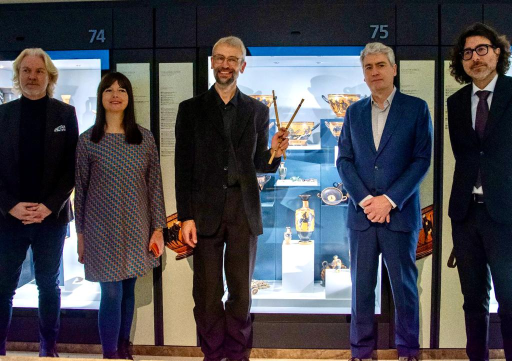 “L’idea di riportare in vita il suono di uno strumento che non si ascoltava da 1500 anni – ha commentato il compositore Dario Marianelli – è stata la grande ispirazione. Osservare questi strumenti muti che sono festa per gli occhi quando si osservano nei Musei, mi è sembrata la grande occasione per ridar voce all’aulos di cui si era persa la tecnica esecutiva e costruttiva”. Da questa scelta è nato il coinvolgimento del maestro Barnaby Brown, “un esperto di archeologia musicale – ha detto la direttrice Eva Degl’Innocenti – che nello studio e nella ricerca su questo strumento ha usato un metodo indiziario che usano gli archeologi per le attività di ricerca”.