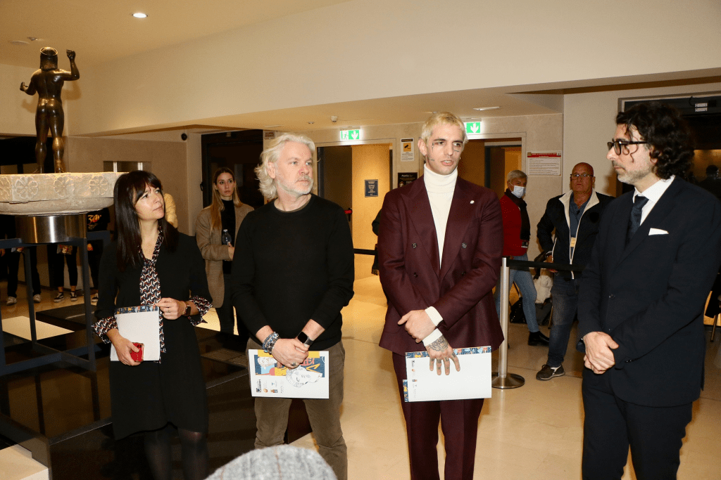 «Siamo partiti da un tema principale – ha raccontato Achille Lauro – che si evolve per tutto il brano della durata di 15 minuti. C’è l’evoluzione della vita in 4 blocchi: l’inizio – ovvero la nascita. E per i primi 3, 4 minuti si ha la sensazione che la musica diventi l’abbraccio materno associato a un tema dolce. Poi la musica cambia, si evolve come cambia la vita. E l’idea è legata all’incontro che al Museo si fa con una figura emblematica del MArTA l’Atleta di Taranto, simbolo del superamento delle sfide. In questo secondo blocco, quindi, la musica diventa avvincente e dalla dolcezza della melodia si passa a un ritmo più incalzante. Poi c’è la terza fase che, seguendo il tema della. Maturità della vita che dalla sua poesia riserva momenti complessi, si trasforma in una musica che abbraccia un feeling più cupo per, poi, concludersi con il ritorno all’origine, alla vita che torna, alla rinascita, con il tema musicale dell’inizio che si ripete in una sorta di catarsi».