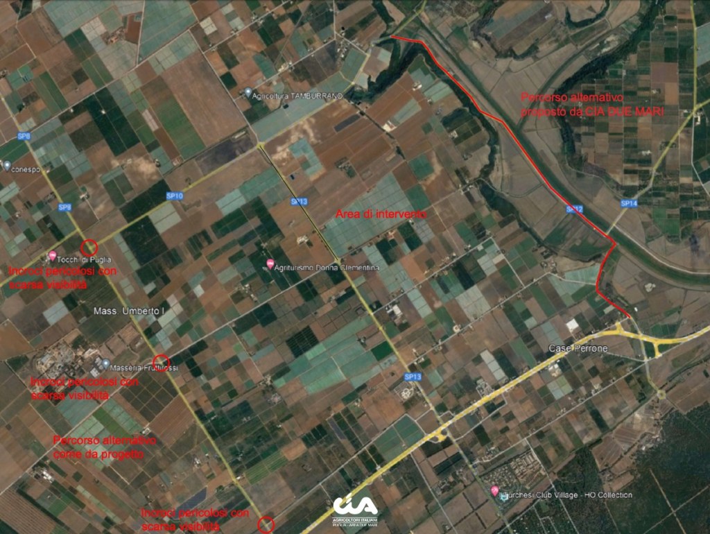 Il percorso alternativo, come è possibile visionare dagli elaborati realizzati da CIA Due Mari, prevede un tragitto di ulteriori 5,5 km che presenta criticità da non sottovalutare e da mettere in sicurezza, poiché già teatro di diversi incidenti mortali.