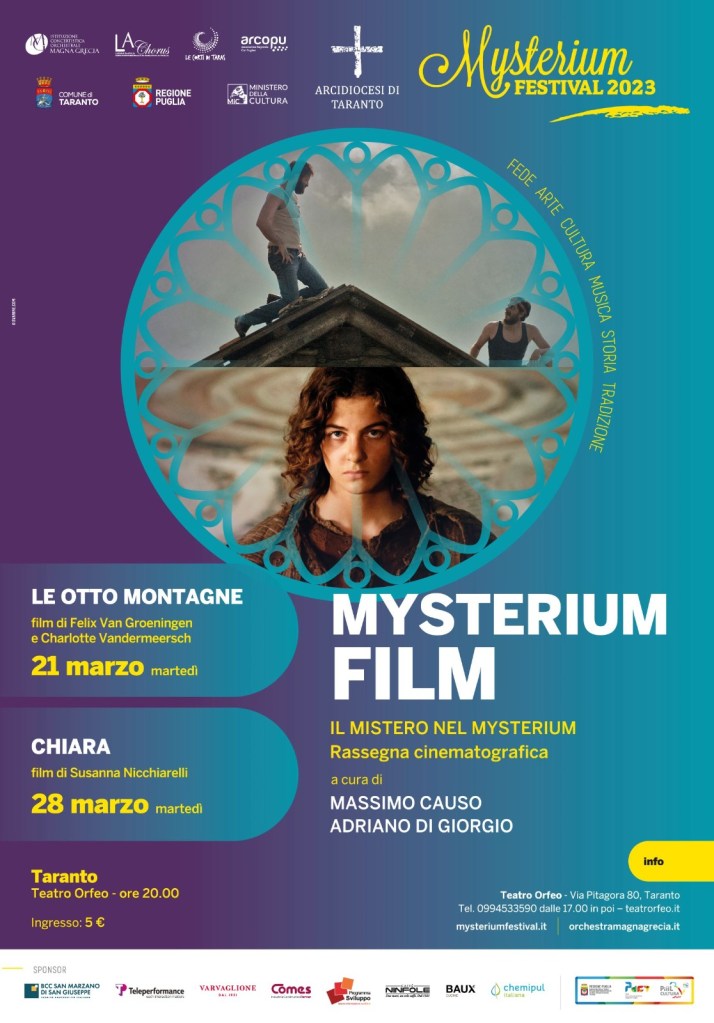 Le otto montagne di Felix van Groeningen e Charlotte Vandermeersch (martedì 21 marzo), e Chiara di Susanna Nicchiarelli (martedì 28 marzo) entrambi in programma al Cinema-teatro Orfeo di Taranto alle 20.00, sono i due film all’interno del Mysterium Film.