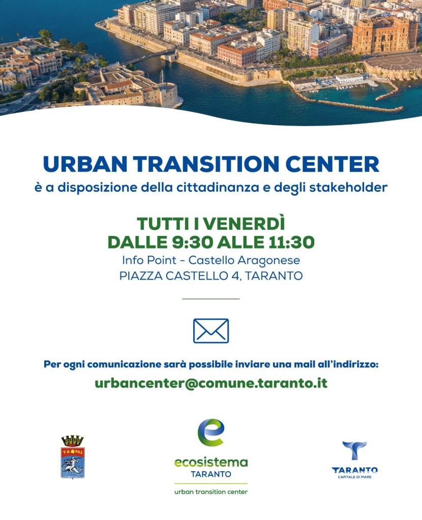 Per ogni comunicazione sarà anche possibile utilizzare l’indirizzo e-mail urbancenter@comune.taranto.it.