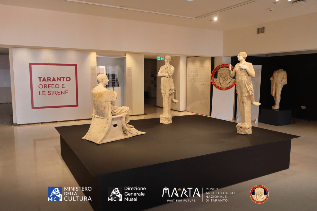 “Orfeo e le Sirene”, il gruppo scultoreo acquisito definitivamente alla collezione permanente del Museo Archeologico Nazionale di Taranto lo scorso 5 aprile, ha compiuto un lungo viaggio prima di approdare nella città dei due mari. Un viaggio lungo e periglioso quasi quanto quanto della nave Argo a cui il mito di Orfeo fa riferimento.