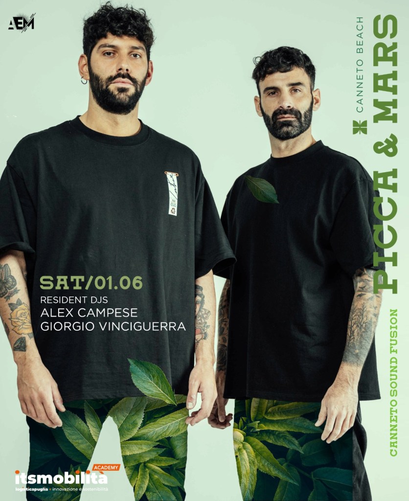 Ma, ad aprire il mese di giugno, saranno altri due artisti rigorosamente pugliesi che si esibiranno sabato 1: Picca&Mars. Conosciuti per l’eclettismo e dinamismo, sono diventati in pochissimo tempo un punto di riferimento della movida del sud Italia. Ad affascinare è la loro capacità di fondere stili diversi, mescolando house, afro e indie per creare un mix unico e coinvolgente. Ad impegnare il duo ci sono anche nuovi progetti, come la creazione di un’etichetta discografica e nuovi dischi disponibili nei maggiori portali musicali. A seguire, lo spettacolo continua con i djs resident Alex Campese e Giorgio Vinciguerra.