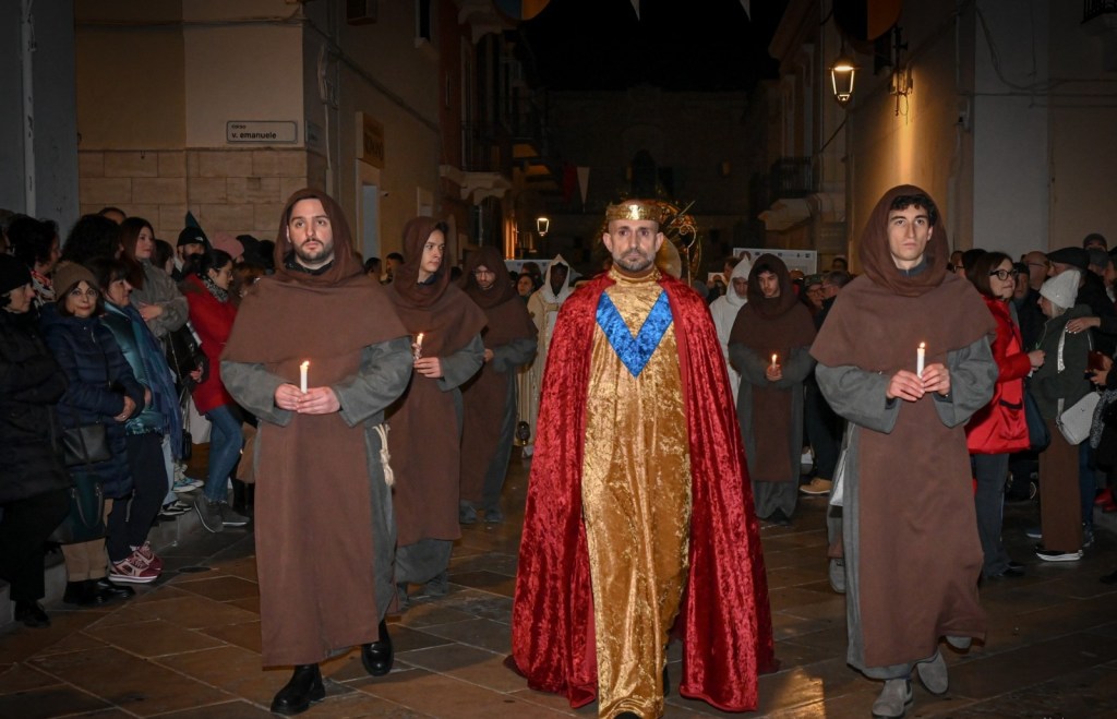 Nel corso della serata, poi, intrattenimento con mercatini medievali, artisti di strada, giochi antichi, ristorazione a tema. Ad animare la piazza, anche la presenza d’eccezione di Gianluca Foresi, attore e regista orvietano che, da più di 20 anni, si esibisce all’interno delle maggiori rievocazioni storiche italiane. Sarà a Mottola con il suo personaggio, il Giullar Cortese, che, ispirandosi alla tradizione medievale dello joculator latino e del jongleur francese, ha reinventato il giullare in chiave moderna.