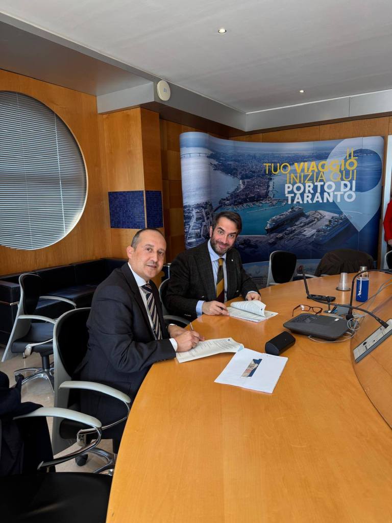 Presso gli uffici della Autorità di Sistema Portuale del Mar Ionio, il dott. Stephen Xuereb, Direttore Generale Operativo di Global Ports Holding, il Gruppo di cui Taranto Cruise Port fa parte, ed il Presidente dell’Autorità Portuale Mar Ionio, avv. Gugliotti, hanno firmato l’accordo che permetterà di avviare i lavori di costruzione del nuovo terminal crociere a partire da ottobre 2026, immediatamente dopo la chiusura della stagione crocieristica. Il progetto prevede il completamento del terminal entro marzo 2027, ovvero in tempo per l’avvio della stagione crocieristica 2027.